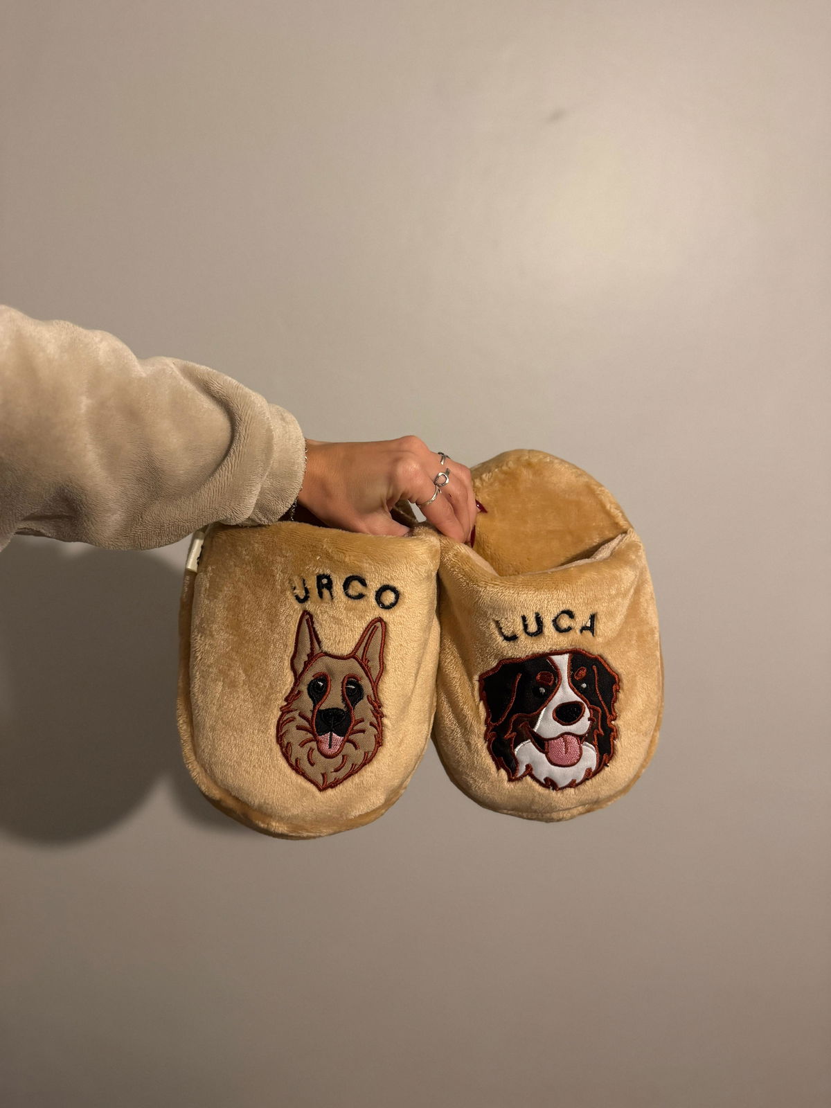 Aclaración: este par de pantuflones consta de una ilustración y nombre en cada pantuflón. NO se hacen dos mascotas en el mismo porque no se aprecia el bordado.